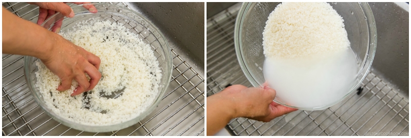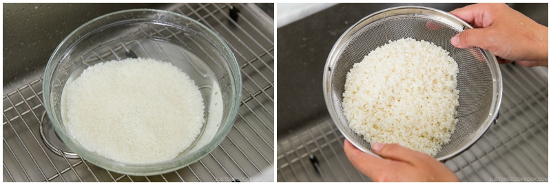 - Wash and Rinse: Start with an initial quick rinse, followed by washing and rinsing the rice three times. See the recipe card for my detailed step-by-step instructions and photos.