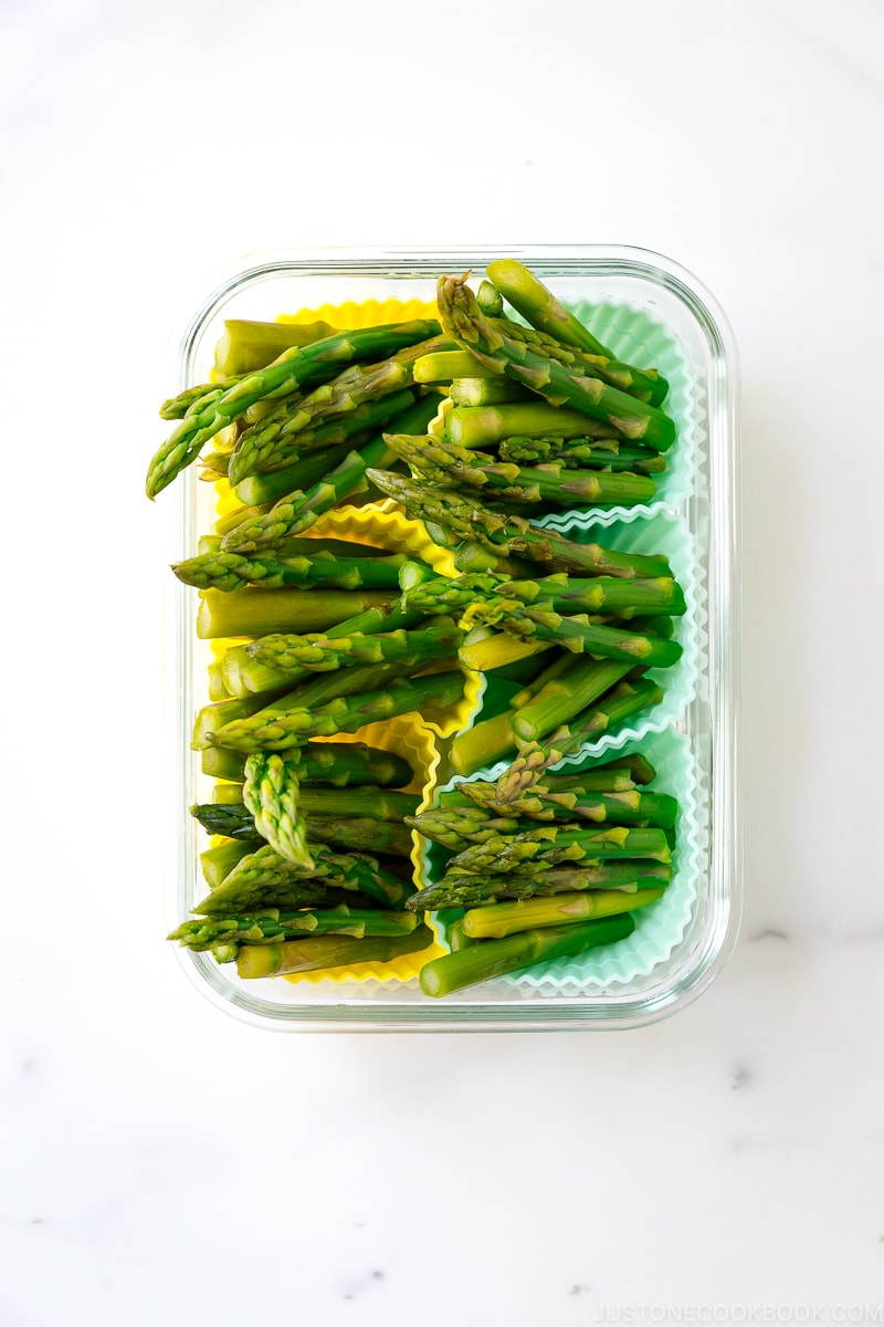 - Blanch Vegetables and Freeze. Blanch vegetables like broccoli, asparagus, green beans, and corn when I have 5 minutes to spare in the kitchen (usually while cooking dinner). Freeze the cooled, plain vegetables. We can pack the frozen vegetables in the bento directly, or you can thaw them overnight in the fridge and quickly pan-fry or dress them with sauce or dressing in the morning. These blanched veggies are a great filler; they are colorful and give a fresh look. Since Japanese main dishes tend to be brown, these fillers pop up and make the lunch box more appealing.